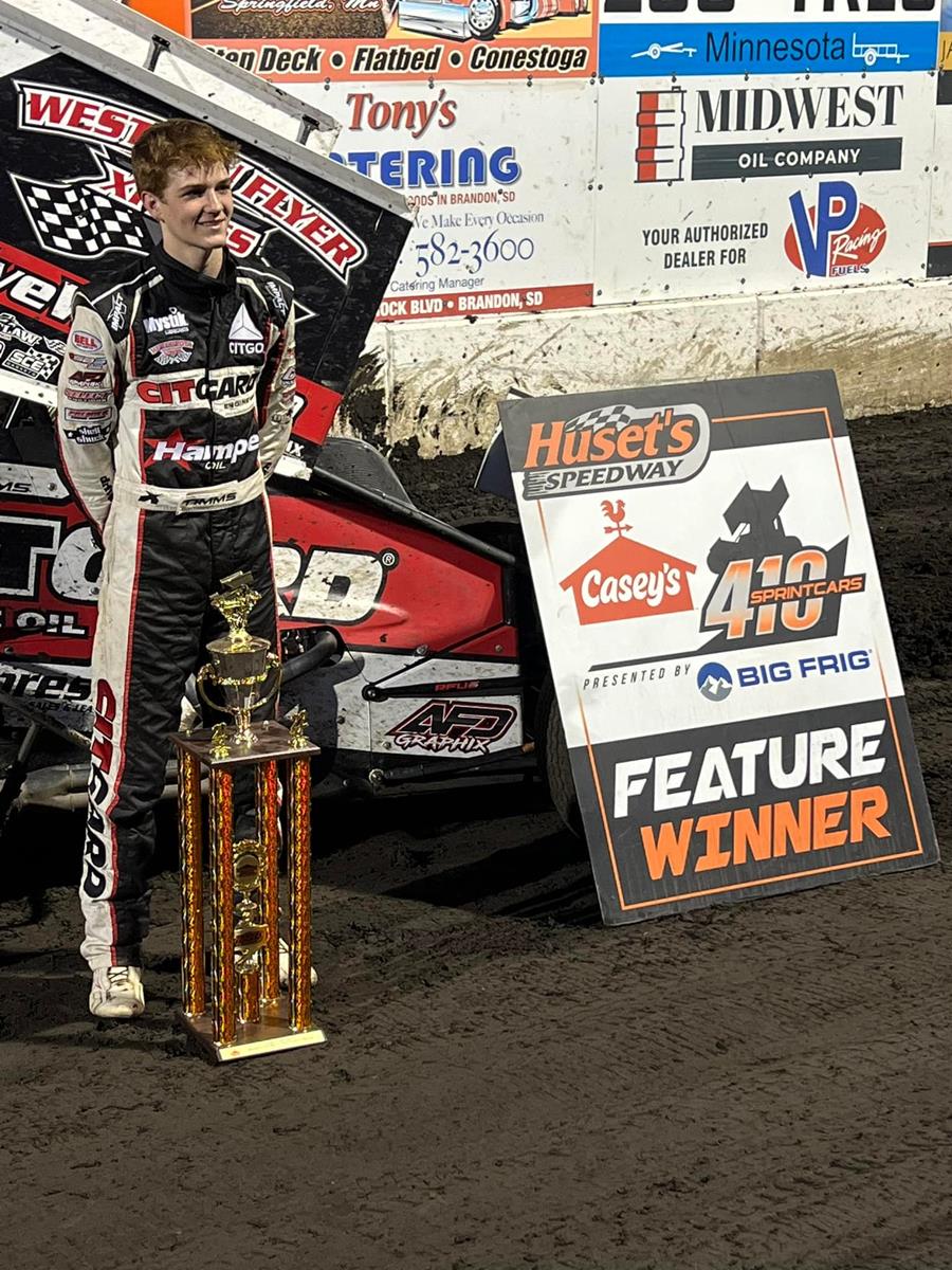 He then took his CitGard Engine Oil / driveWFX.com No. 5T CITGO / Hampel Oil / Western Flyer Xpress / Mystik Lubricants / Eagle Chassis/ Rider Racing Engine Sprint Car to the Winner’s Circle in thrilling fashion on Sunday night with the Northern Outlaw Sprint Association (NOSA) Sprint Cars at Huset’s Speedway with a last-lap pass for the win.