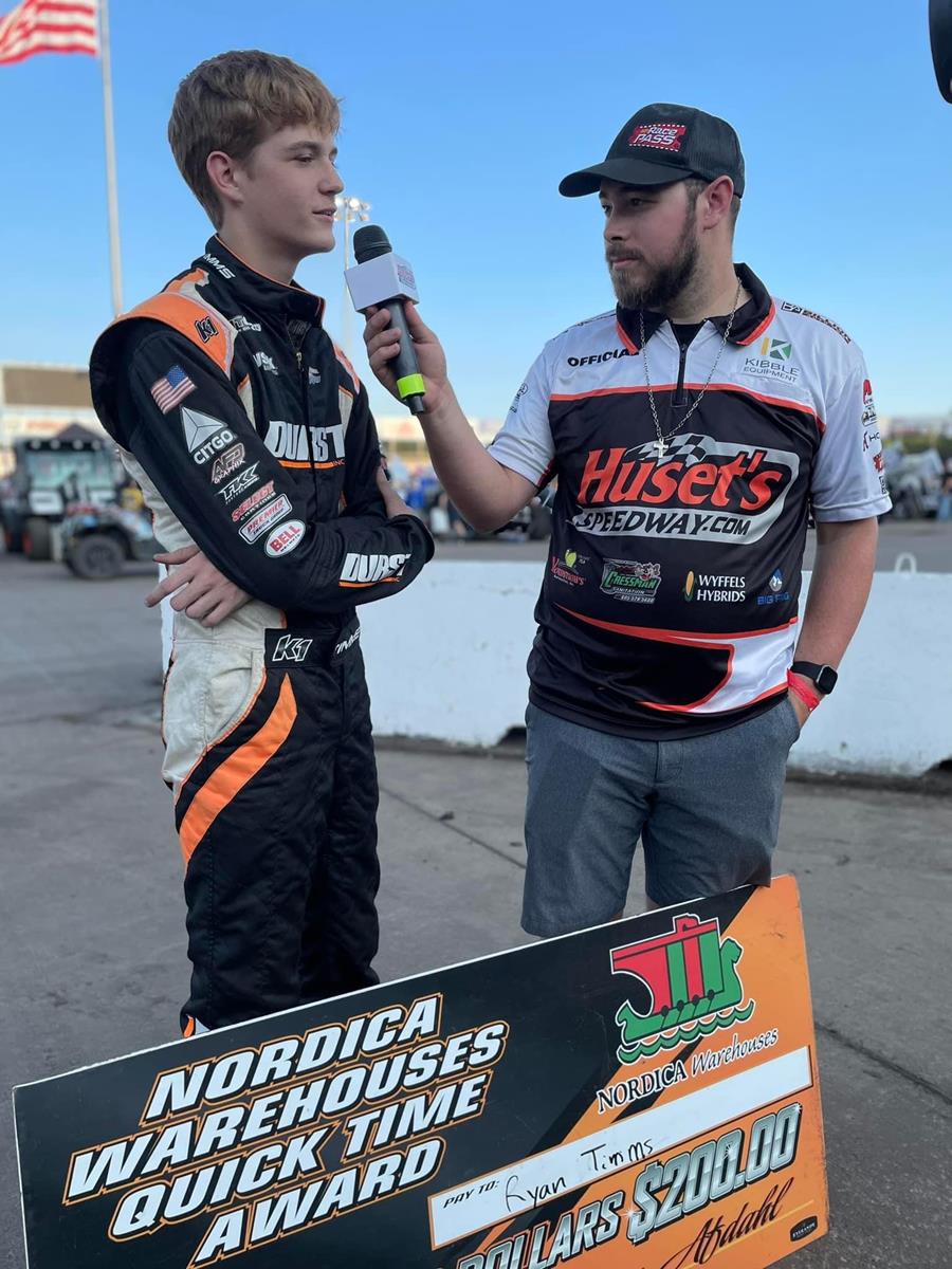 PETERSEN MEDIA: Ryan Timms had a strong showing on Sunday night at Huset’s Speedway. Timing in fastest in qualifying, Timms put on a show working the high side of the speedway as he charged from sixth to second in the feature event.
