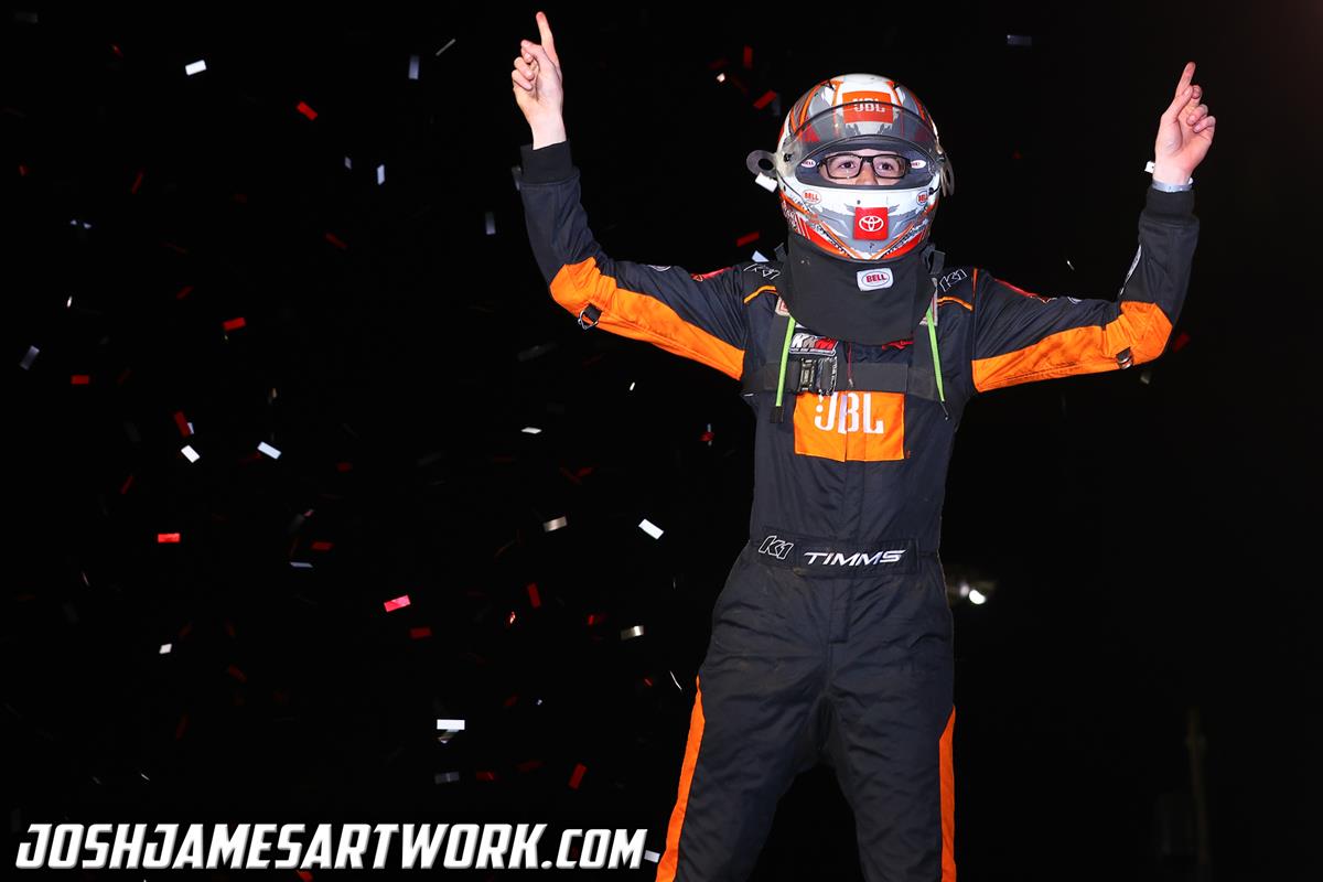 Drawing 25 cars for the event co-sanctioned with the POWRi National Midget Series, Timms stormed into the opener with a fourth-to-first showing in his heat race. Charging from the second row to the front again, Ryan overtook Kale Drake on the 10th circuit and paced the remaining 15 laps to secure his fourth win of the season. He bagged the $4,000 payday ahead of Ashton Torgerson and Chase McDermand.