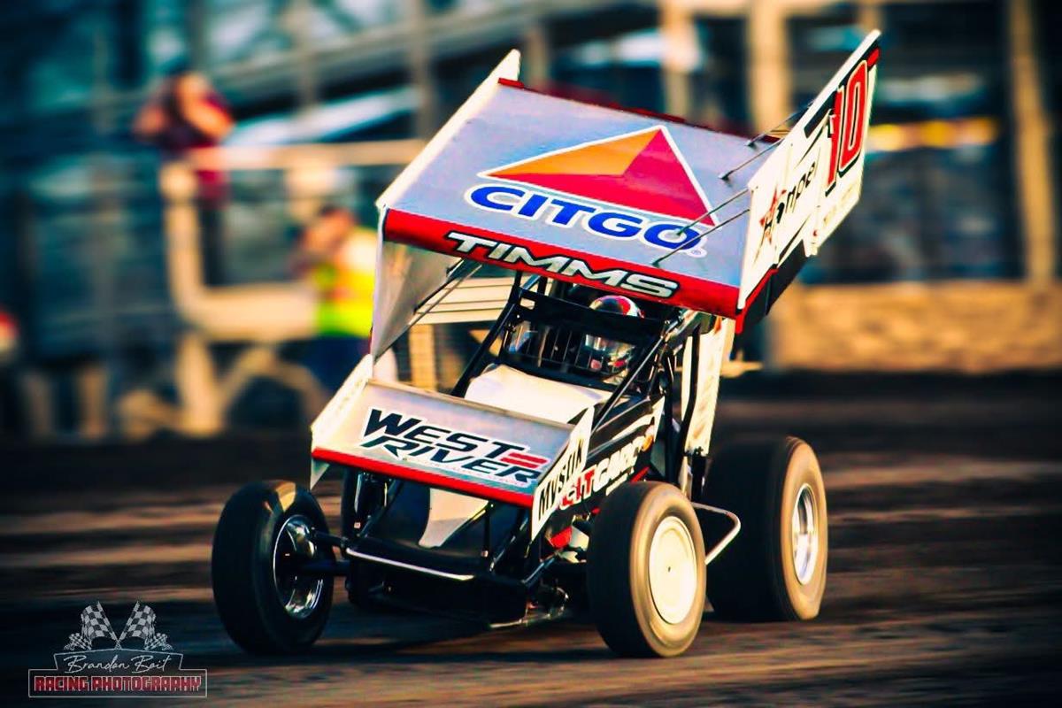 Competing against 23 Midwest Sprint Touring Series entries, Timms kicked off the evening with a heat race victory. However, his night was cut short when a motor failure during the dash sidelined him from the feature.