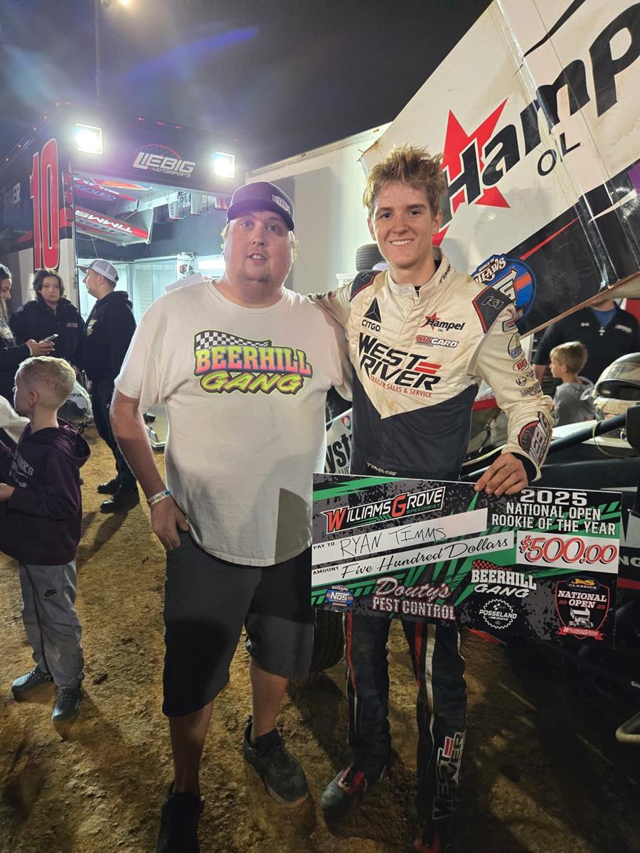 Although unable to conquer another one of Central Pennsylvania's premier open wheel events, "Flyin'" Ryan Timms out of Oklahoma City, Oklahoma, did the next best thing and secured a top-ten finish, doing so in Williams Grove Speedway's $75,000 National Open featuring the World of Outlaws Sprint Car Series on Saturday, October 4. Timms, the reigning Knoxville Nationals and Tuscarora 50 champion, finished tenth in his top-ten outcome, maintaining his place within the frontrunners after commencing the 40-lapper from the exact same position. A third-place finish in the third heat race secured his A-Main appearance. In addition, Ryan Timms was awarded Rookie of the Race presented by Beerhill Gang.
